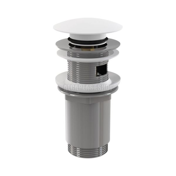 Донный клапан для раковины AlcaPlast клик-клак 5/4" цельнометаллический с переливом и большой белой заглушкой A392B