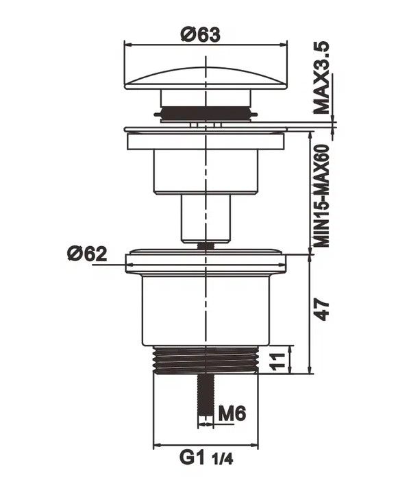 Донный клапан Rose RS31H чёрный