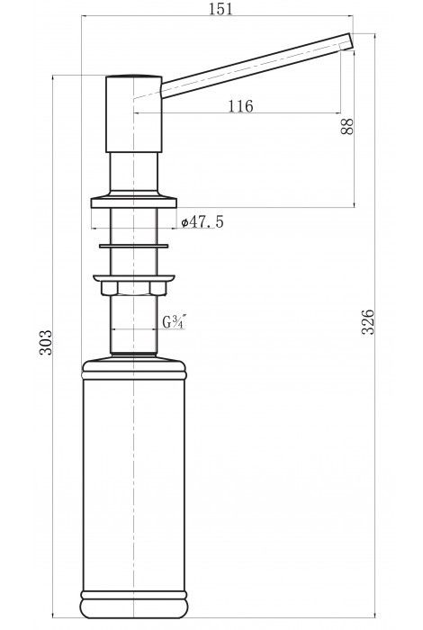 Объем емкости для моющего средства 300млОтверстие для монтажа d35ммПодходит к мои?кам, имеющим дополнительное отверстиеМатериал - латуньЦвет: грей