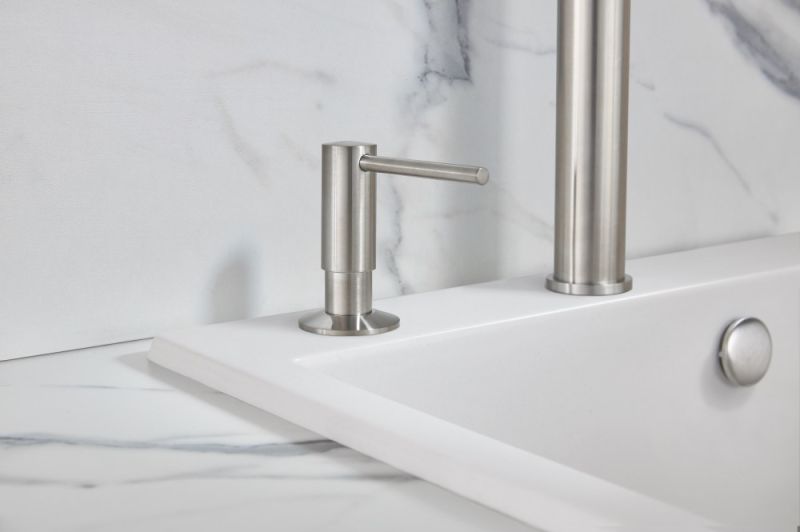 Данная модель изготовлена из латуни — сплава меди, цинка и олова — качественного материала, устойчивого к любым повреждениям. В отличие от пластиковых диспенсеров латунные изделия выглядят дороже и роскошнее, а на практике показывают себя надежнее. При должном обращении они должны служить не меньше, чем смесители или даже кухонные мойки.