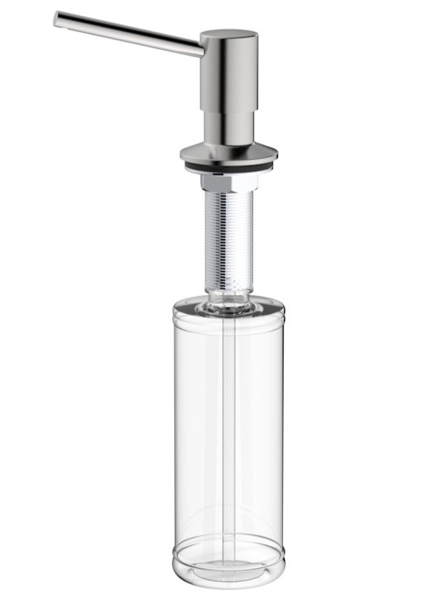 Дозатор встраиваемый для жидкого моющего средства Raglo R720.01.05 - отличный аксессуар для вашей кухни. Устанавливается в отверстие в столешнице Ф25 - 35 мм и фиксируется при помощи прижимной гайки на резьбе, рядом со смесителем для кухни. А со смесителями R80.62.05, R81.64.05, S70.61.05 составит прекрасный дуэт. Потому что выполнены они в одном цвете - сатин. Толщина столешницы возможна от 1 до 5 см. Головка дозатора из латуни, колба объемом 350 мл из прочного пластика. Нажатие мягкое, носик дозатора поворачивается на 360 градусов. Дозатор легко монтируется на столешницу и весьма удобно и просто происходит пополнение моющего средства. Дозатор превосходно организует пространство у мойки и несомненно украсит ее.