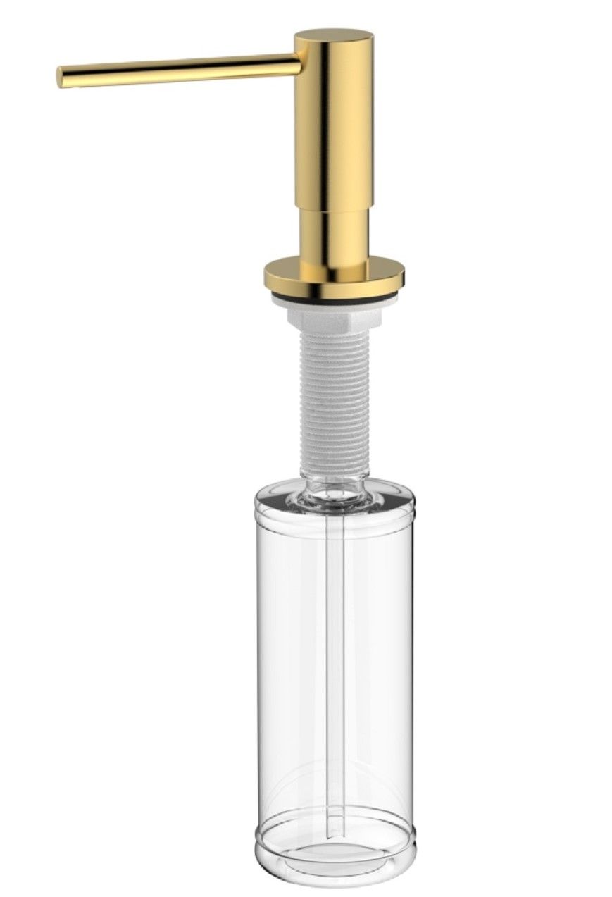 Дозатор встраиваемый для жидкого моющего средства Raglo R720.02.03 - отличный аксессуар для вашей кухни. Устанавливается в отверстие в столешнице Ф25 - 35 мм и фиксируется при помощи прижимной гайки на резьбе, рядом со смесителем для кухни. А со смесителями R80.62.03, R81.64.03, S70.61.03 составит прекрасный дуэт. Потому что выполнены они в одном цвете - сатиновое золото. Толщина столешницы возможна от 1 до 5 см. Головка дозатора из латуни, колба объемом 350 мл из прочного пластика. Нажатие мягкое, носик дозатора поворачивается на 360 градусов. Дозатор легко монтируется на столешницу и весьма удобно и просто происходит пополнение моющего средства. Дозатор превосходно организует пространство у мойки и несомненно украсит ее.
