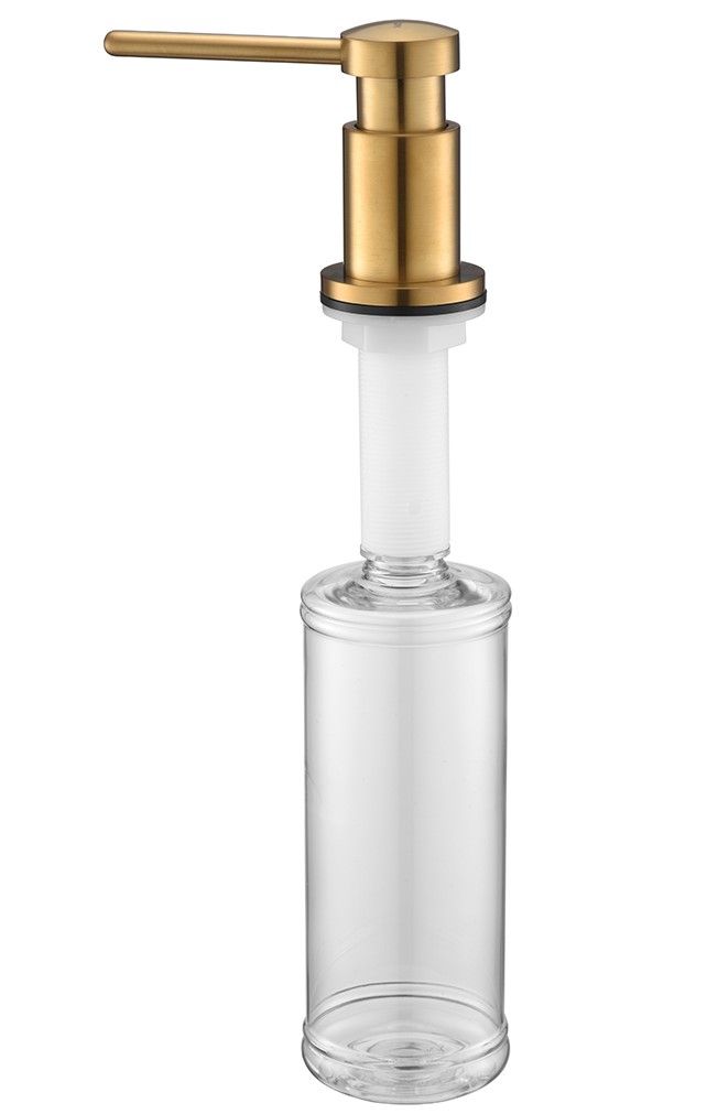 Дозатор для кухни и ванной, артикул D005-BGДозатор для кухни или ванной, встраиваемый, объемом 350 мл, матовая поверхность, изготовлен из латуни и пластика.