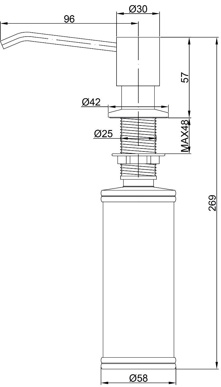 Дозатор для кухни и ванной, артикул D002-GMДозатор для кухни или ванной серии Rein, встраиваемый, объемом 350 мл, матовая поверхность, изготовлен из латуни и пластика.