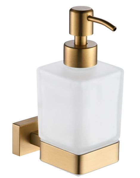 Дозатор жидкого мыла Shevanik SG5644G, золотой сатин.Материал: латунь/стекло.Монтаж: настенный.Форма розетки: прямоугольная.