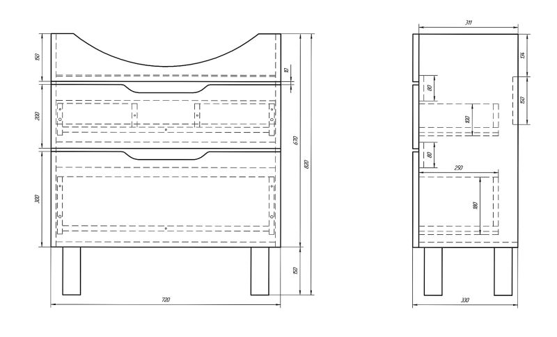 Напольная классическая коллекция в 4-х размерах с 2-мя выдвижными ящиками. Верхний ящик с органайзером Во всех предметах используются механизмы с доводчиками Hettich. Хромированные ножки. В комплект можно докупить зеркальные шкафы, пенал, полупенал