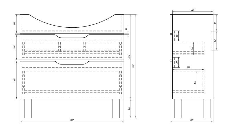 Напольная классическая коллекция в 4-х размерах с 2-мя выдвижными ящиками. Верхний ящик с органайзером Во всех предметах используются механизмы с доводчиками Hettich. Хромированные ножки. В комплект можно докупить зеркальные шкафы, пенал, полупенал.