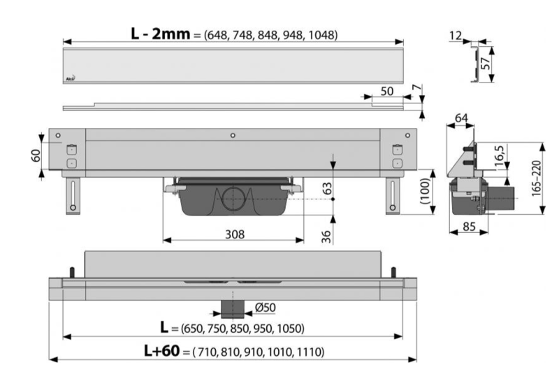 - Водоотводящий желоб из нержавеющей стали (обработанной методом травления и пассивации, а также прошедшей электрохимическую полировку)