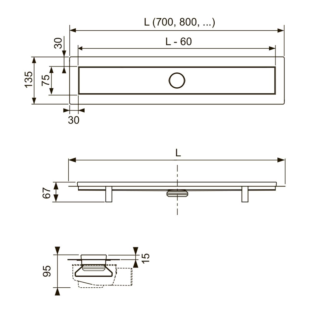 Дренажный канал TECE TECElinus 15103069 60 см с основой для плитки tile и панелью steel с мембраной хром матовый купить