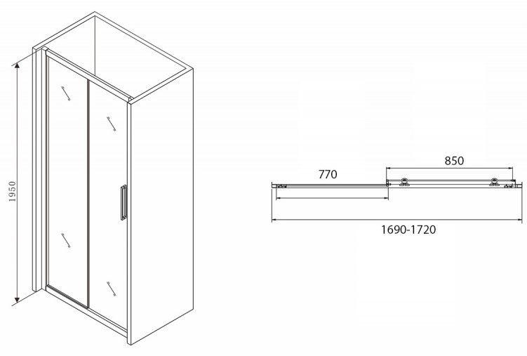 Душевая дверь ABBER Schwarzer Diamant 170см AG30170BH