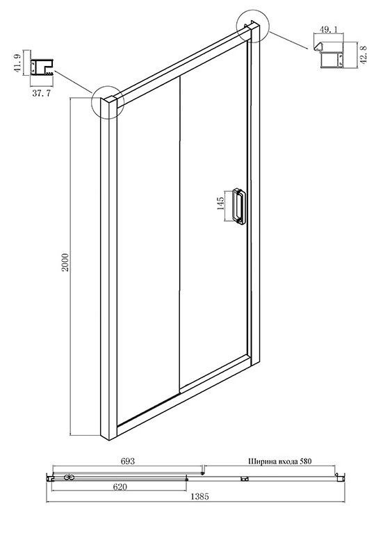 - Ширина входа: 690 мм.