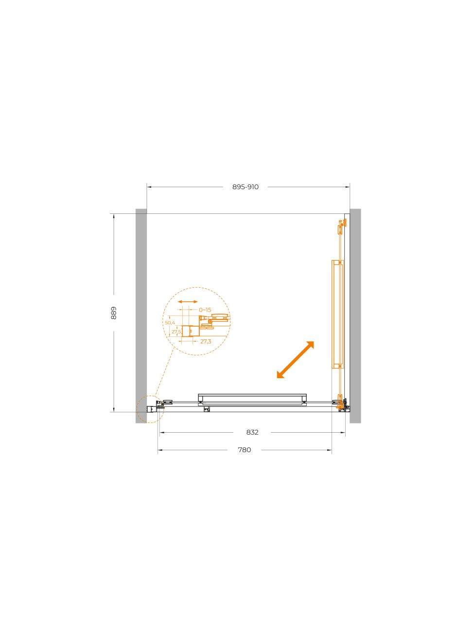 Характеристики Ширина : 90 см. Высота : 195 см. Ширина входа : 78 см. Толщина стекла... Подробнее