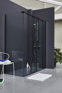 Душевая дверь Contra Black 120х195 E22C120-BL регулируется по ширине, снабжена магнитными замками и широкими стильными ручками.Технические данные:Профиль: черный.