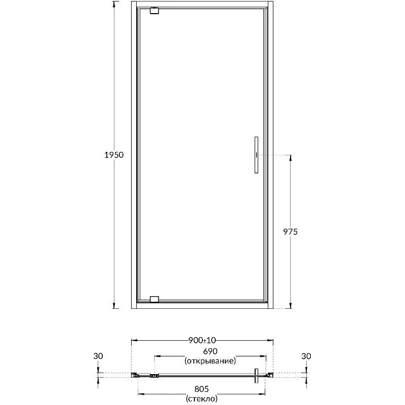 Преимущества распашной двери VETRO: — Лаконичный современный дизайн: алюминиевый профиль, скрытый крепёж, стильная ручка с обеих сторон двери — Регулировка проема 20 мм (10 мм с каждой стороны) — Закаленное безопасное стекло 6 мм, водоотталкивающее покрытие «easy clean» — Правое или левое открывание, лёгкая установка.