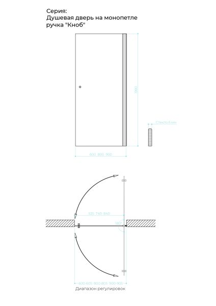 Душевая дверь на монопетле by Deonria D-198-90-6-T-HM 90см хром матовый/сатин