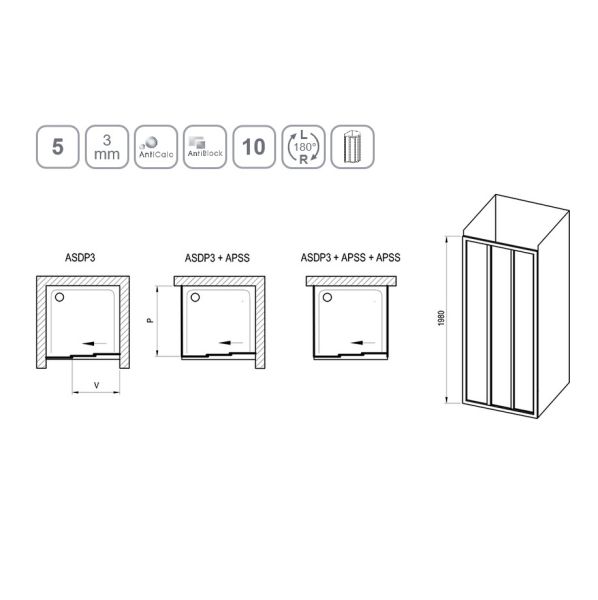 Душевая дверь раздвижная Ravak ASDP3-120 198 (черный+Transparent) 00VG03R2Z1