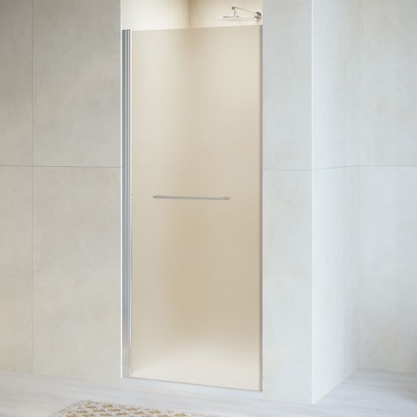 Душевая дверь распашная с маятниковой петлей (открытие только наружу). Маятниковые петли с функцией подъема двери. В комплекте нижняя пороговая планка. Стальная ручка - полотенцедержатель. Трап или поддон приобретается отдельно.
