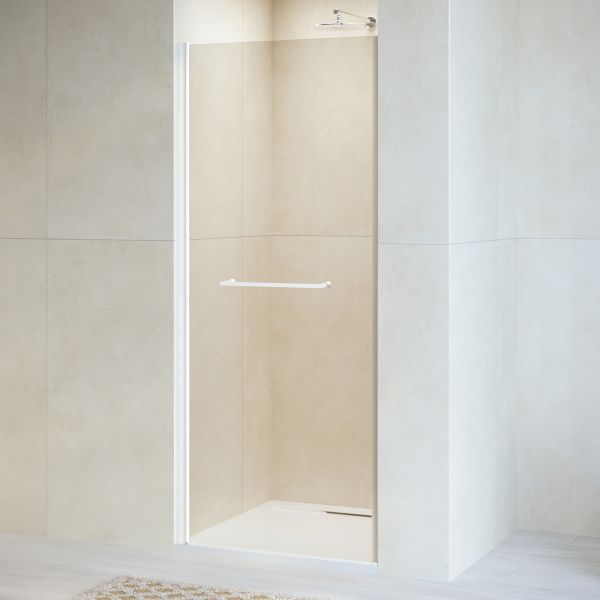 Душевая дверь распашная с маятниковой петлей (открытие только наружу). Маятниковые петли с функцией подъема двери. В комплекте нижняя пороговая планка. Стальная ручка - полотенцедержатель. Трап или поддон приобретается отдельно.