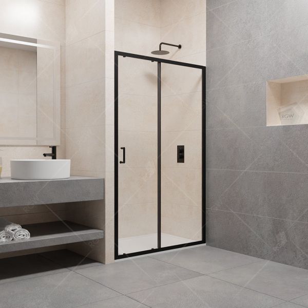 Душевая дверь раздвижная RGW PA-14. Ручка скоба из цинкового сплава, двойные верхние ролики. двойные отстегивающиеся нижние ролики, крышки верхнего профиля. Трап или поддон приобретается отдельно.Душевая дверь RGW Passage PA-14B 110x195 профиль чёрный важнейший предмет интерьера ванной, без которого невозможно обойтись. Внутри ниши за душевой дверью можно разместить качественную сантехнику на ваш выбор, установить современную душевую стойку или встроить душевую систему скрытого монтажа, а также повесить удобные полочки для банных принадлежностей.Душевая дверь RGW Passage прямоугольной формой размером 110 см высотой 195 см создаст значительное пространство внутри, для вашего комфорта. Цвет профиля RGW Passage - черный, это бесподобный вариант для современного интерьера. Конструкция дверей 41081411-14 раздвижная, не требует дополнительного пространства для открывания и позволяет оптимизировать пространство ванной комнаты. Стекло у душевой двери RGW 41081411-14 представлено в прозрачном исполнении, толщиной 6 мм, отлично будет гармонировать с любым дизайном интерьера ванной. Универсальность ориентации RGW Passage позволяет не задумываться о, том в какой именно угол нужно устанавливать, и даже при изменении положения других элементов сантехники, можно без проблем изменить ориентацию. RGW Passage 41081411-14 спроектирован дизайнерам с четким соблюдением всех серьезных элементов современного стиля. Наличие покрытия анти-капля надежно защитит стекло от налета, подтёков и других загрязнений, а так же сохранит чистоту стекла и эстетичный внешний вид.Все душевые ограждения RGW, производятся с жестким соблюдением современных стандартов качества и применение материалов безопасных для здоровья, благодаря тому, что родна производства Германия. Душевая дверь RGW Passage PA-14B 110x195 профиль чёрный гармонично вольется в ваш интерьер и подарит ему дополнительные современные элементы.