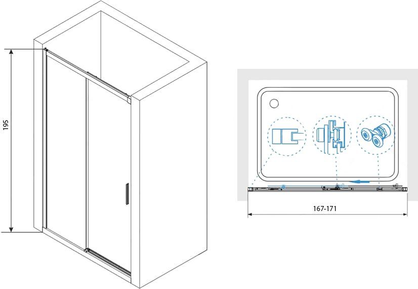 Габариты (Ш В): 170x195 см Напольный монтаж / монтаж на поддон Раздвижная система дверей Двери с... Подробнее