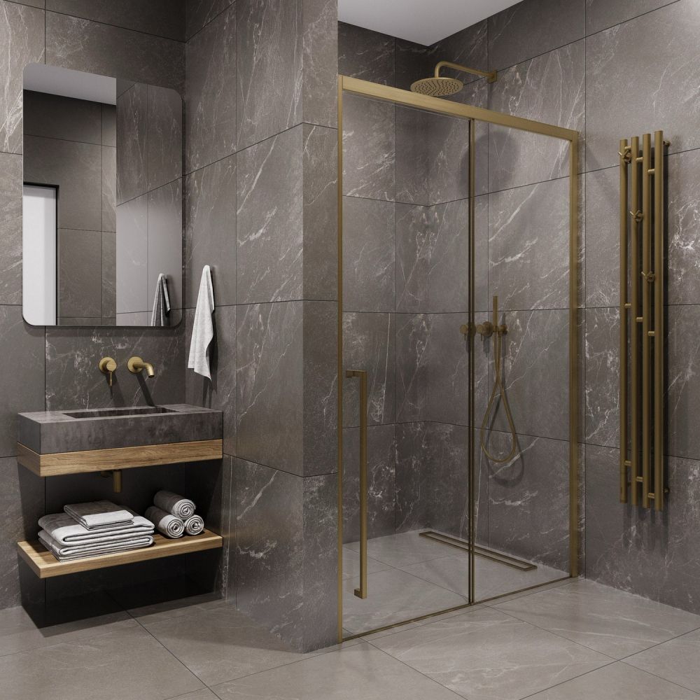 Душевая дверь в нишу Timo T54L 140 см левая золото матовое купить