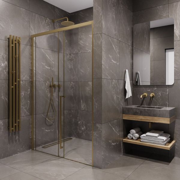 Душевая дверь в нишу Timo T55R 150 см правая золото матовое купить