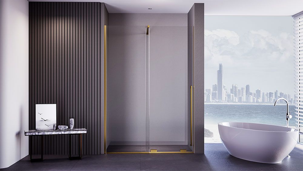 Душевая дверь Veconi Premium Trento PTDW-50G, 1100x2000, брашированное золото, стекло прозрачное купить