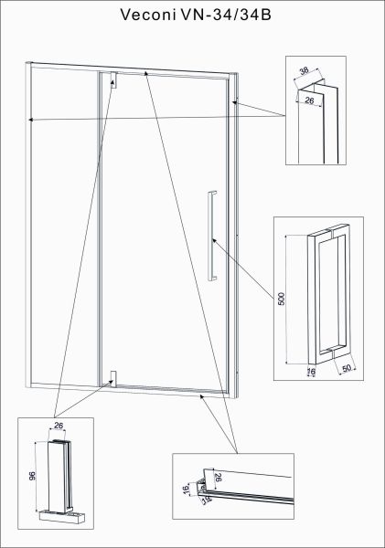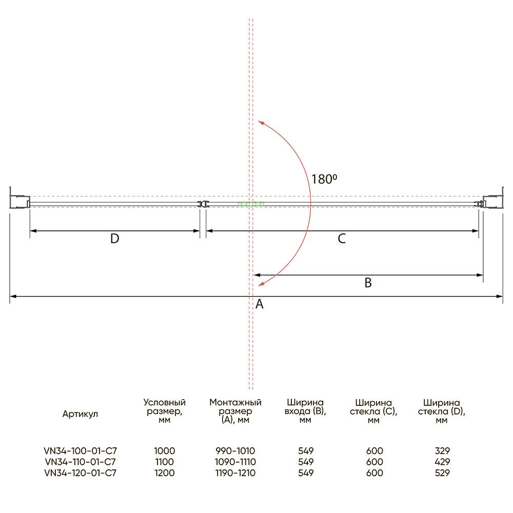 Душевая дверь Veconi Vianno VN-34, 1100x1950, хром, стекло прозрачное купить