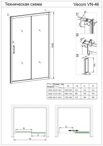 Душевая дверь Veconi Vianno VN-46BC, 1400x1950, Никель брашинг, стекло прозрачное