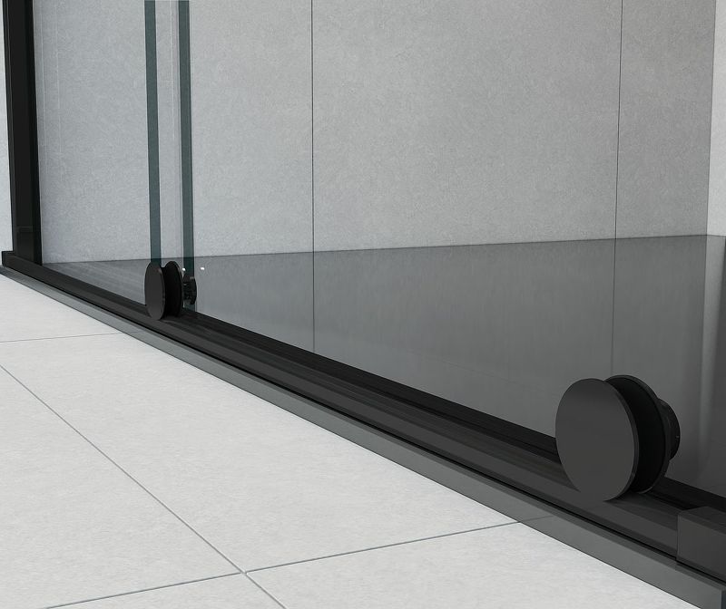 Материал полотна двери: закаленное стекло.