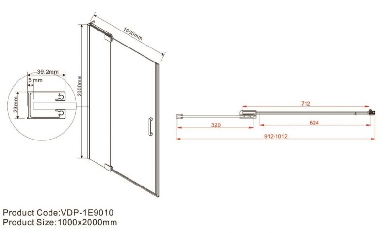Душевая дверь Vincea Extra VDP-1E 90/100 см распашная, стекло прозрачное, профиль черный, VDP-1E9010CLBДушевая дверь