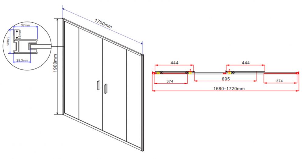 Душевая дверь Vincea Garda VDS-1G2 170 см раздвижная, стекло шиншилла, профиль хром, VDS-1G2170CHДушевая дверь