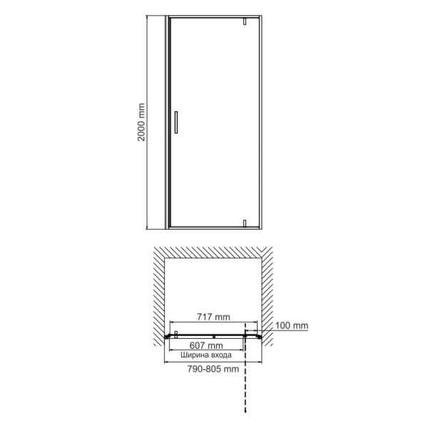 Душевая дверь Wasserkraft Elbe 74P27 80см чёрный матовый
