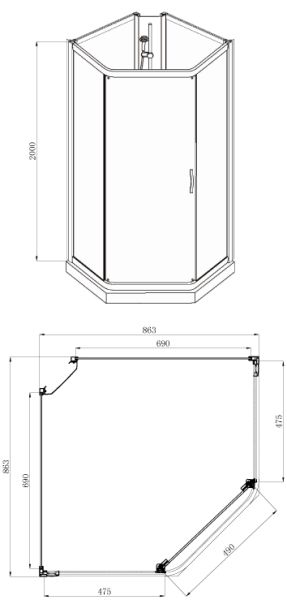 Артикул краткий:AZN10806900Форма:многоугольнаяВид поддона:среднийИсполнение полотна двери:ПрозрачноеОриентация:универсальнаяМатериал поддона:АкрилНаличие крыши:открытая, без крышиВход:угловойКонструкция дверей:раздвижнаяТолщина полотна, мм:4Материал задней стенки:СтеклоМатериал профиля:алюминий