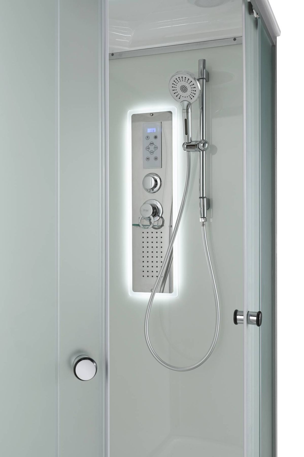 Стильная душевая кабина AvaCan D 2012L LED сочетает в себе высокую функциональность, практичность и надежность. При изготовлении применяется безопасное закаленное стекло толщиной 4 мм (матовое), надежно фиксируемое алюминиевым профилем. Сборка без силикона (увеличивает срок службы), внутренняя сборка(облегчает установку и ревизию; позволяет установить в ограниченном пространстве), смеситель резьбовой (без хомутов). Съемный экран поддона (позволяет осуществлять ревизию сифона). Цвет профиля матовый хром. Двойные металлические ролики дверей (увеличивают срок службы).В комплекте : душевая штанга, полочка, тропический (верхний) душ, арома-лейка с витамином С (картридж съемный), сенсорный пульт (блютуз, радио, LED подсветка в крыше и в центральной панели, вентелятор.)