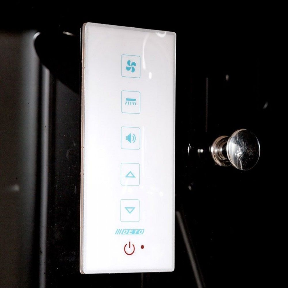 Душевая кабина Deto B09S LED BLACK Прекрасный выбор. Гарантия производителя 5 лет, безсиликоновая сборка, разнообразная вариация кабин (с подсветкой/без , с крышей/без , гидромассаж да/нет). Страна- Финляндия. Закаленное стекло высокого качества (высокая температура закалки). При производстве используются высококачественные материалы и комплектующие!