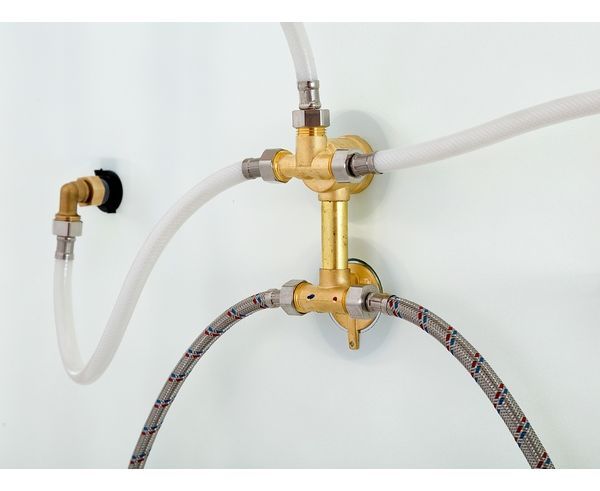 - Смеситель регулировки температуры и напора воды с керамическим картриджем;