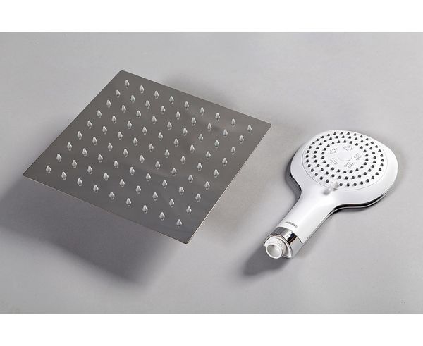- Широкий верхний душ с самоочищающимися резиновыми джетами;