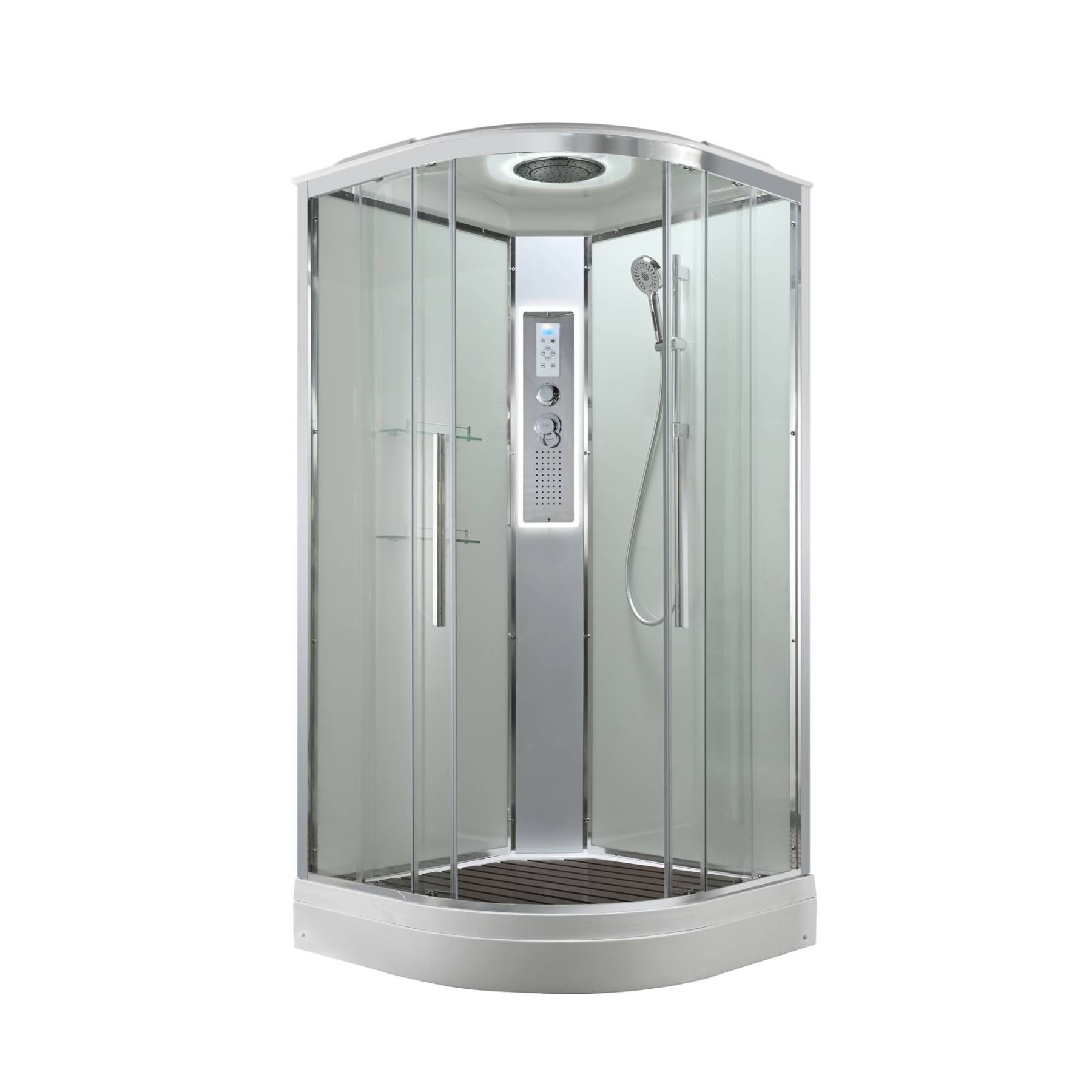 Стильная душевая кабина AvaCan EM2010LEDT сочетает в себе высокую функциональность, практичность и надежность. При изготовлении применяется безопасное закаленное стекло толщиной 5 мм (прозрачное), надежно фиксируемое алюминиевым профилем. Сборка без силикона (увеличивает срок службы), внутренняя сборка(облегчает установку и ревизию; позволяет установить в ограниченном пространстве), смеситель резьбовой (без хомутов). Съемный экран поддона (позволяет осуществлять ревизию сифона). Цвет профиля хром. Двойные металлические ролики дверей (увеличивают срок службы).В комплекте : душевая штанга, две полочки , тропический (верхний) душ, арома-лейка с витамином С (картридж съемный),полимерная вставка в поддон(имитация дерева),сифон, ручки дверей из нержавейки , двойные ролики ,пульт сенсорный(Блютуз ,LED подсветка ,радио ,вытяжка),гидромассаж спины.