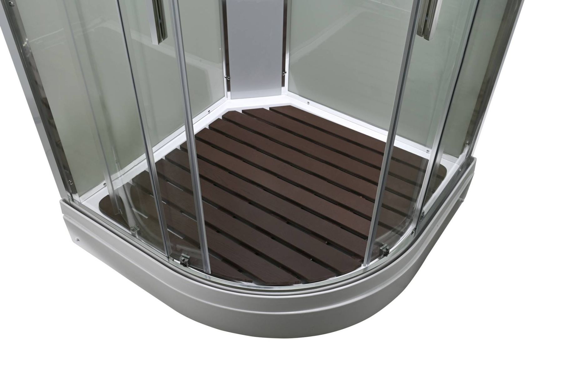 Стильная душевая кабина AvaCan EM2011LEDT сочетает в себе высокую функциональность, практичность и надежность. При изготовлении применяется безопасное закаленное стекло толщиной 5 мм (прозрачное), надежно фиксируемое алюминиевым профилем. Сборка без силикона (увеличивает срок службы), внутренняя сборка(облегчает установку и ревизию; позволяет установить в ограниченном пространстве), смеситель резьбовой (без хомутов). Съемный экран поддона (позволяет осуществлять ревизию сифона). Цвет профиля хром. Двойные металлические ролики дверей (увеличивают срок службы).В комплекте : душевая штанга, две полочки , тропический (верхний) душ, арома-лейка с витамином С (картридж съемный),полимерная вставка в поддон(имитация дерева),сифон, ручки дверей из нержавейки , двойные ролики ,пульт сенсорный(Блютуз ,LED подсветка ,радио ,вытяжка),гидромассаж спины.