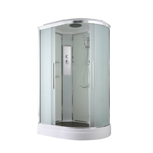 Стильная душевая кабина AvaCan EM2811L сочетает в себе высокую функциональность, практичность и надежность. При изготовлении применяется безопасное закаленное стекло толщиной 5 мм (матовое), надежно фиксируемое алюминиевым профилем. Сборка без силикона (увеличивает срок службы), внутренняя сборка(облегчает установку и ревизию; позволяет установить в ограниченном пространстве), смеситель резьбовой (без хомутов). Съемный экран поддона (позволяет осуществлять ревизию сифона). Цвет профиля  хром. Двойные металлические ролики дверей (увеличивают срок службы).В комплекте : душевая штанга, две полочки , тропический (верхний) душ, арома-лейка с витамином С (картридж съемный),полимерная вставка в поддон(имитация дерева),сифон, ручки дверей из нержавейки , двойные ролики .