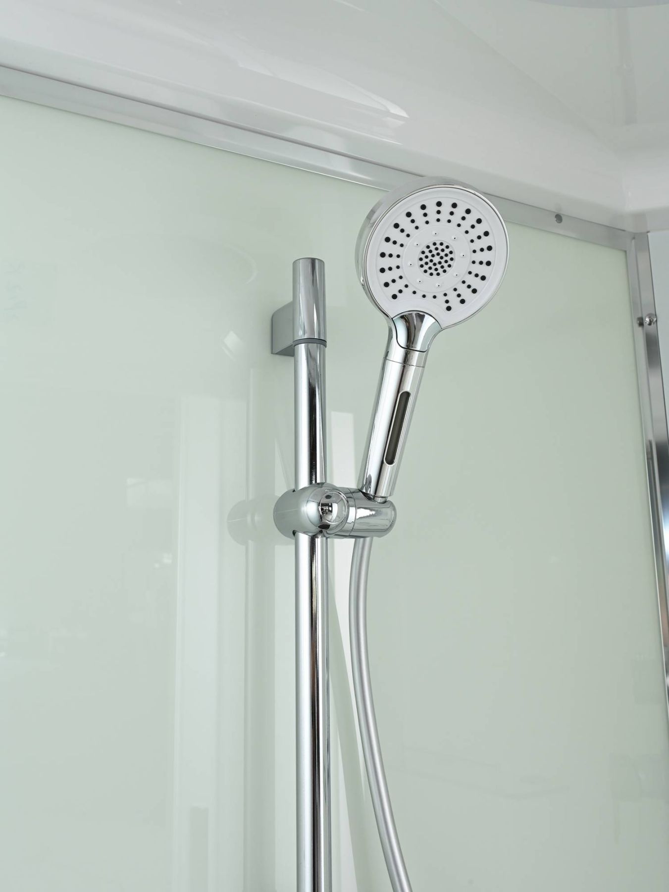 Стильная душевая кабина AvaCan EM2812LLED сочетает в себе высокую функциональность, практичность и надежность. При изготовлении применяется безопасное закаленное стекло толщиной 5 мм (матовое), надежно фиксируемое алюминиевым профилем. Сборка без силикона (увеличивает срок службы), внутренняя сборка(облегчает установку и ревизию; позволяет установить в ограниченном пространстве), смеситель резьбовой (без хомутов). Съемный экран поддона (позволяет осуществлять ревизию сифона). Цвет профиля хром. Двойные металлические ролики дверей (увеличивают срок службы).В комплекте : душевая штанга, две полочки , тропический (верхний) душ, арома-лейка с витамином С (картридж съемный),полимерная вставка в поддон(имитация дерева),сифон, ручки дверей из нержавейки , двойные ролики ,пульт сенсорный(Блютуз ,LED подсветка ,радио ,вытяжка),гидромассаж спины.
