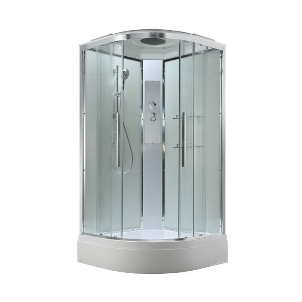 Стильная душевая кабина AvaCan сочетает в себе высокую функциональность, практичность и надежность. При изготовлении применяется безопасное закаленное стекло, надежно фиксируемое алюминиевым профилем. Профиль сделан из алюминия повышенной прочности. Сборка без силикона (увеличивает срок службы, защищает от протечек), внутренняя сборка (облегчает установку и ревизию; позволяет установить в ограниченном пространстве и обойтись без демонтажа других сантехнических приборов), смеситель резьбовой (без хомутов). Съемный экран поддона (позволяет осуществлять подключение и ревизию сифона).Двойные металлические ролики дверей (распределение нагрузки на два ролика, увеличивают срок службы). Душевая штанга(позволяет регулировать по высоте ручную лейку), ручная арома-лейка с витамином С (картридж в комплекте,есть возможность замены или удаления картриджа), полочки(из стекла, с ограничителем), сифон с гидрозатвором.