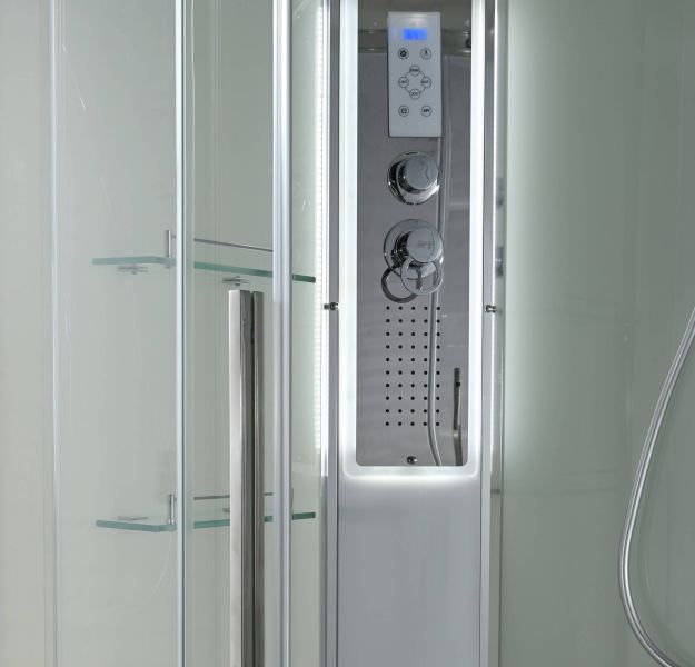 Стильная душевая кабина AvaCan сочетает в себе высокую функциональность, практичность и надежность. При изготовлении применяется безопасное закаленное стекло, надежно фиксируемое алюминиевым профилем.Профиль сделан из алюминия повышенной прочности. Сборка без силикона (увеличивает срок службы, защищает от протечек), внутренняя сборка (облегчает установку и ревизию; позволяет установить в ограниченном пространстве и обойтись без демонтажа других сантехнических приборов), смеситель резьбовой (без хомутов). Съемный экран поддона (позволяет осуществлять подключение и ревизию сифона).Двойные металлические ролики дверей (распределение нагрузки на два ролика, увеличивают срок службы). Душевая штанга(позволяет регулировать по высоте ручную лейку), ручная арома-лейка с витамином С (картридж в комплекте,есть возможность замены или удаления картриджа), полочки(из стекла, с ограничителем), сифон с гидрозатвором, сенсорный пульт управления с функциями: блютуз, LED подсветка, радио, вытяжка, гидромассаж спины, тропический (верхний) душ.