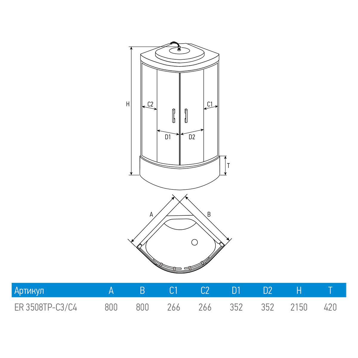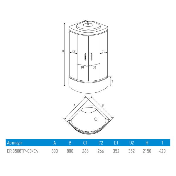Душевая кабина Erlit ER3508TP-C4-RUS (800x800x2150)