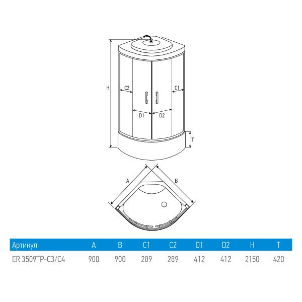 Душевая кабина Erlit Comfort ER3509TP-C4-RUS (900x900x2150)