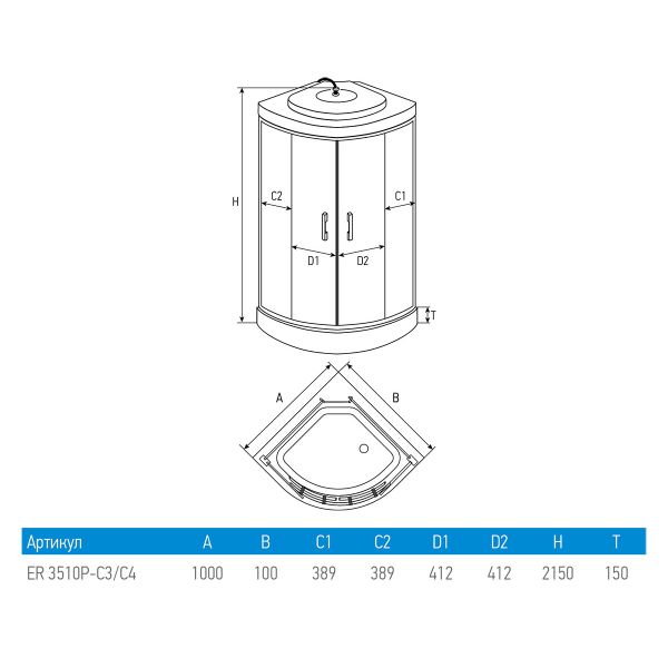 Душевая кабина Erlit Comfort ER3510P-C3-RUS 1000x1000x2150