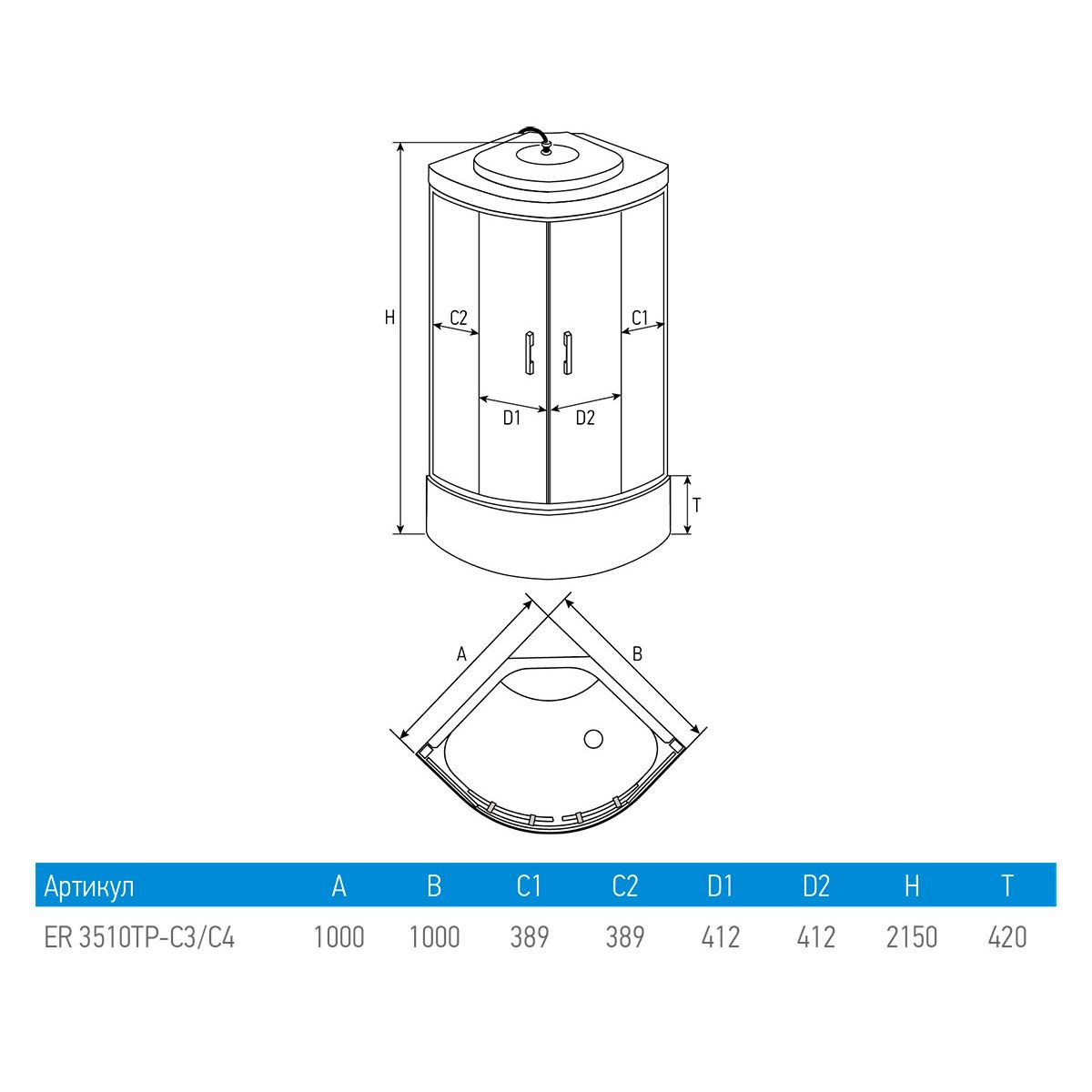 Душевая кабина Erlit Comfort ER3510TP-C4-RUS (1000x1000x2150)