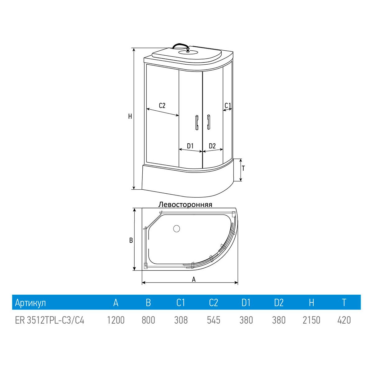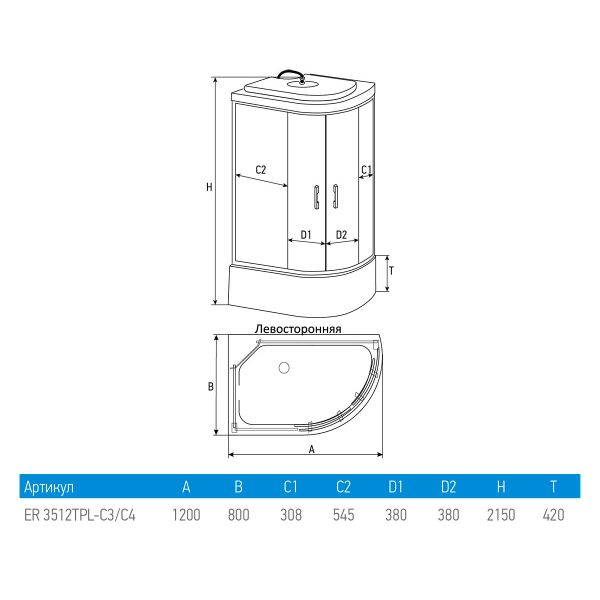 Душевая кабина Erlit Comfort ER3512TPL-C4-RUS (1200x800x2150)