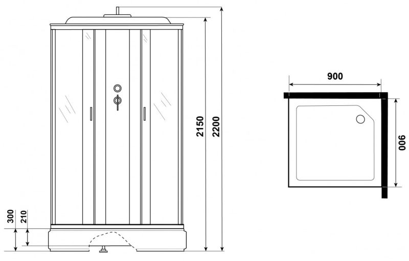 • Размеры (ДхШхВ) 90x90х215